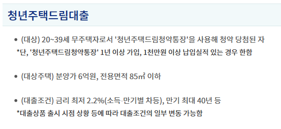 청년주택드림 청약통장과 연계된 주택 구매 대출 상품으로,