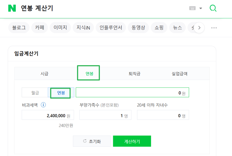 - 네이버 검색창에 "연봉 계산기"를 입력합니다.