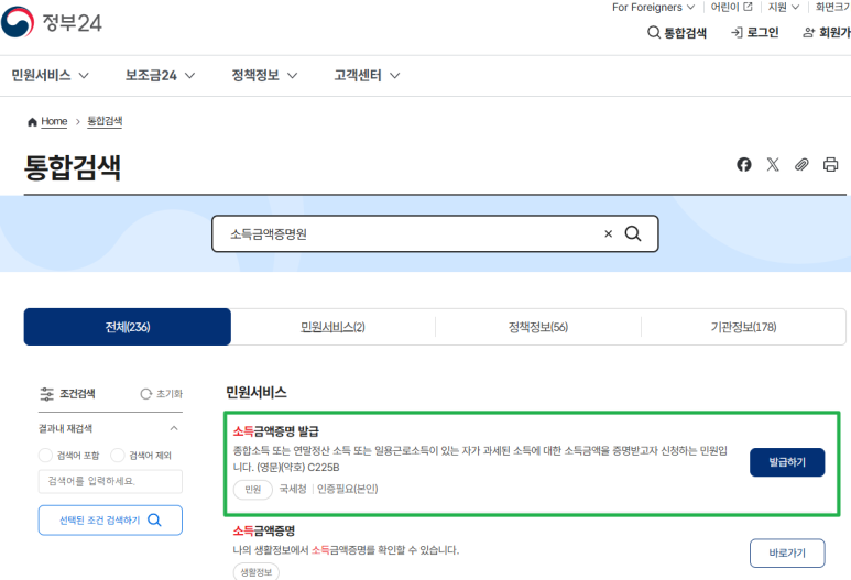 - 회원 가입 없이도 발급이 가능해 속도가 빠릅니다. 정부24 홈페이지 검색창에 ‘소득금액증명’ 입력 → 비회원 신청 → 발급 연도·용도 선택 → 공동‧간편인증서 로그인 → PDF 저장 또는 프린트. 프린터가 없다면 PDF를 내려받아 가까운 문구점에서 출력하시면 됩니다.