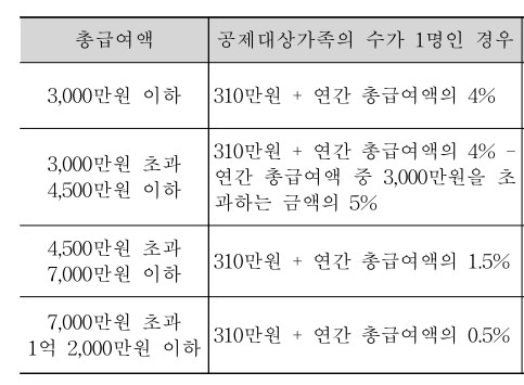(공제대상가족수 : 1명 기준)