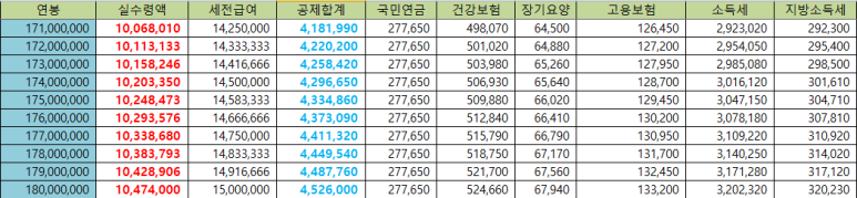 [1억 7천만원 ~1억 8천만원 연봉 실수령액]