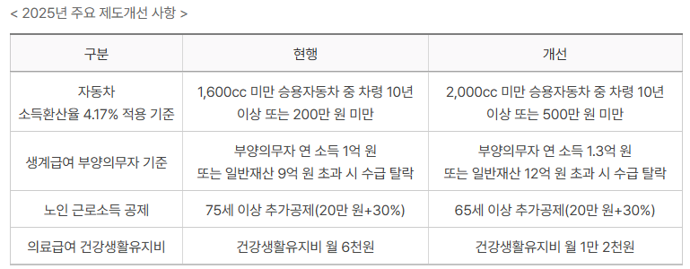 • 의료급여: 중위소득 40% 이하 가구 지원
