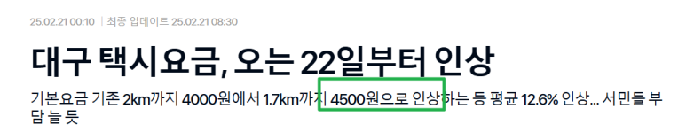 - 대구에서는 5,500원이 6,000원으로 상향