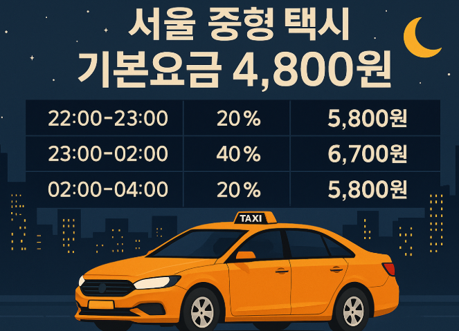 1. 서울 택시 야간 할증 및 기본 요금