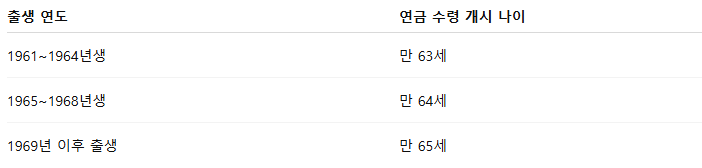 • 1969년 이후 출생: 만 65세부터 수령