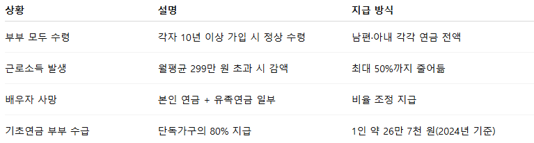 • 부부가 모두 10년 이상 가입했다면 각자 국민연금을 정상적으로 받을 수 있습니다