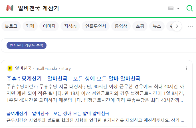 네이버에서 주휴수당 계산기를 검색하면 바로 계산기가 나옵니다.