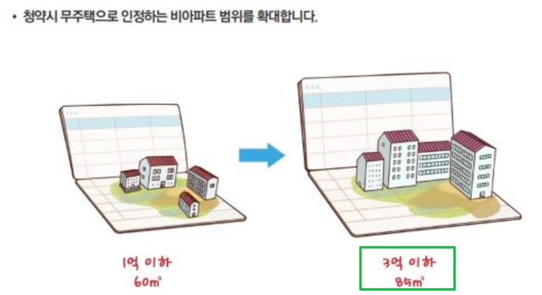 - 전용 85㎡ 이하, 수도권 공시가 5억/비수도권 3억 이하 주택 보유는 무주택 간주(전체 세대 1호 한정)