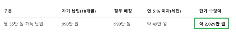 장병내일준비적금도 월 55만 원 매칭까지 확대되어 18개월 최대 2,029만 원의 목돈 마련이 가능해졌습니다.