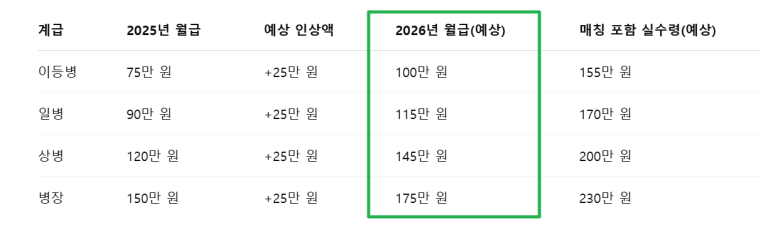 2027년 병장 200만 원 목표와 정부 인상 정책에 따라, 2026년엔 병장 180만 원 등 추가 인상이 매우 유력합니다.