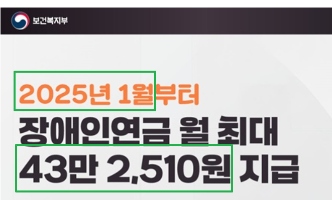 2025년부터 장애인연금 월 최대 지급액이 43만 2,510원으로 인상되었습니다.