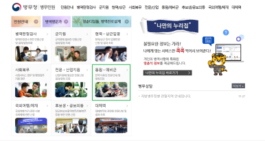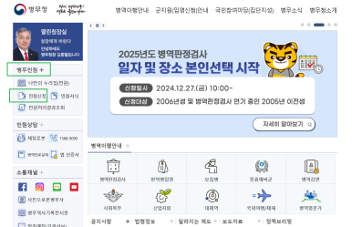 - 병무청 홈페이지(앱) 접속 → 병무민원 메뉴 클릭
