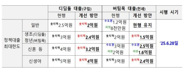 기존 5억 원(주택자금), 3억 원(전세자금)에서 2025년 6.27 대책 발표로