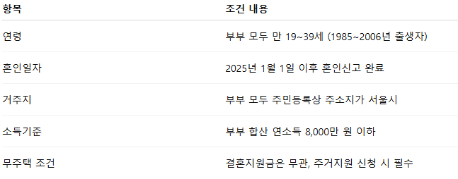 서울시가 정책으로 혼인 초기 경제적 부담을 줄이고, 출산·육아까지 이어질 수 있도록 토대를 마련하려는 목적입니다.