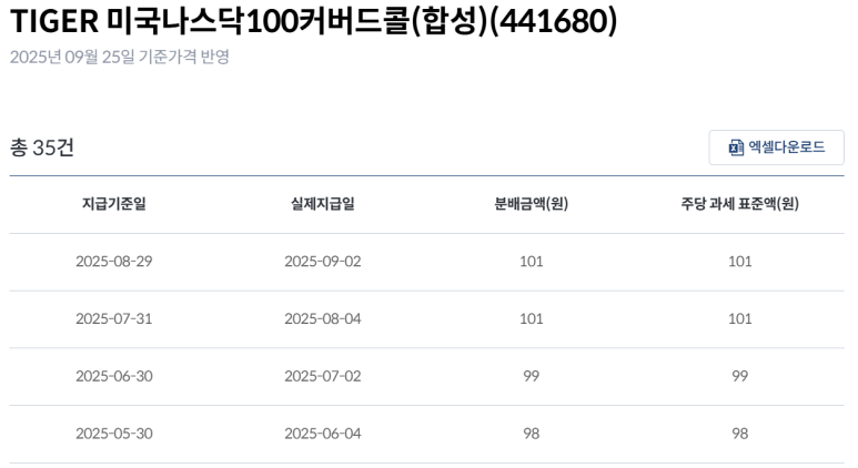 - 단점: 주가가 수직 상승할 때 콜옵션 매도로 인해 보유주식 상승분 수익이 제한됨, 분배금 자체가 ETF 실제 이익과는 달라 변동 가능성 존재