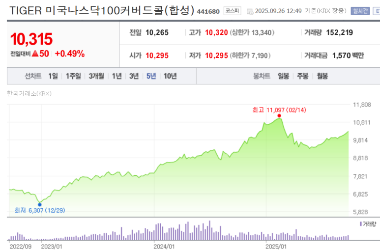TIGER 미국나스닥100커버드콜(합성) ETF 개요