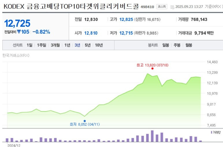 KODEX 금융고배당TOP10타겟위클리커버드콜 ETF 주가 (출처 N증권)