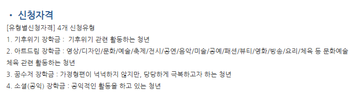 • 만 18세~34세로 현재 각종 어려움 속에서도 학업, 창업, 진로, 예술·공익·기후 활동을 포기하지 않거나 준비하는 청년