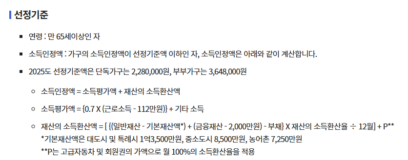 가장 기본이 되는 조건은 만 65세 이상이어야 한다는 것입니다. 신청일을 기준으로 만 65세가 되어 있어야 하며, 생일이 속한 달의 1개월 전부터 신청이 가능합니다. 예를 들어 1960년 9월 15일생이신 경우, 2025년 9월부터 기초연금을 받으실 수 있으며, 신청은 2025년 8월 1일부터 가능합니다.