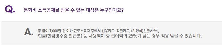 - 정식 등록된 문화비 소득공제 사업자 카드 가맹점에서 이용한 이용료만 인정