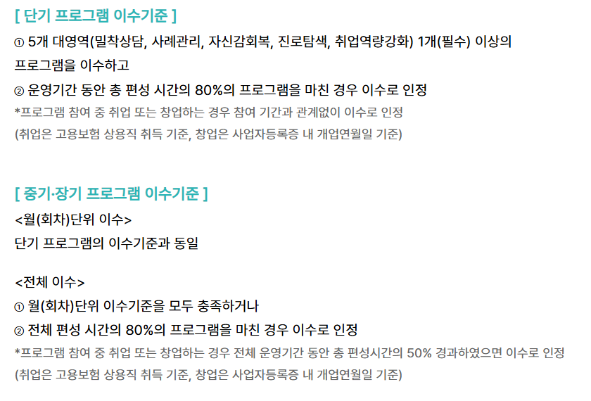 • 프로그램 이수율 80% 미만 시 수당 지급이 중단될 수 있습니다.