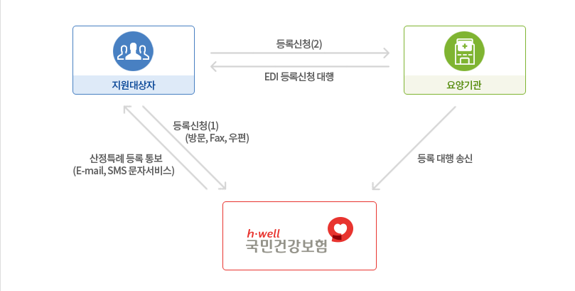 국민건강보험공단 지사 방문, 우편 또는 팩스 접수- 필수 서류: 진단서, 입·퇴원 확인서, 진료비 영수증, 주민등록등본, 건강보험 자격 확인서, 신분증, 통장 사본