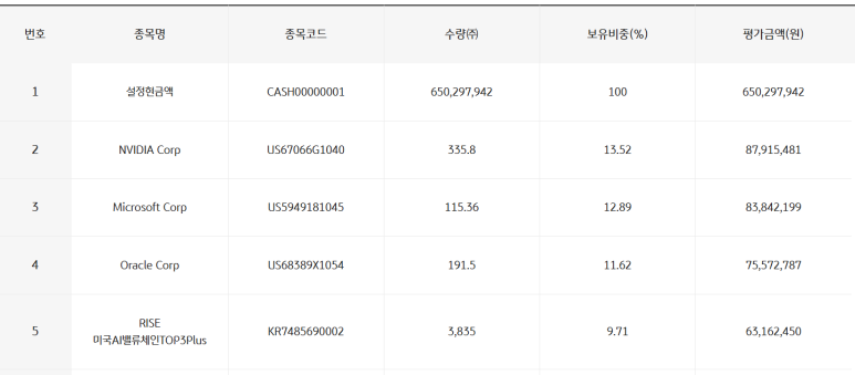 이 외에도 AMD, 브로드컴, 아마존, 구글 등 AI 밸류체인의 핵심 기업들이 포트폴리오에 포함되어 있어, AI 산업 전반의 성장에 고르게 투자할 수 있습니다.