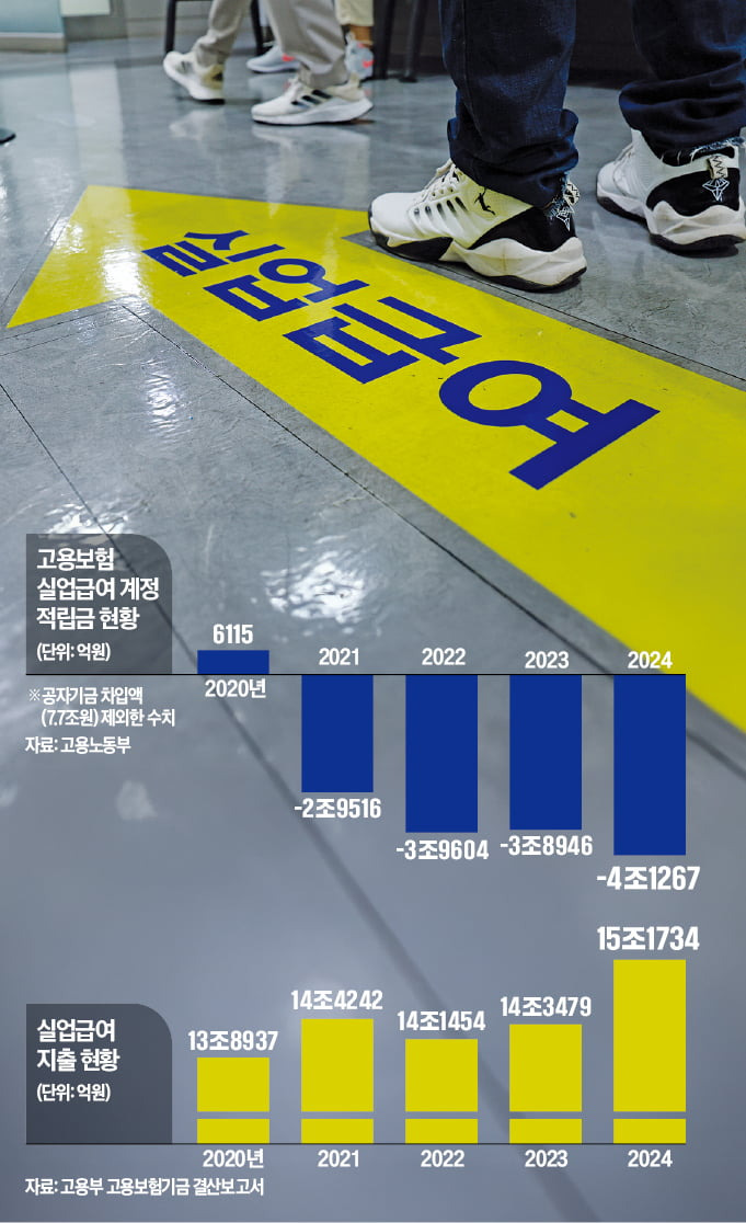 2024년 말 기준 실업급여 계정의 남은 자산은 3조 5천억 원에 불과하며, 여기엔 공공기금에서 빌린 7조 원이 포함돼 있어 실질 적자는 약 4조 원에 달합니다.