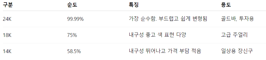 24k, 18k, 14k의 차이점?