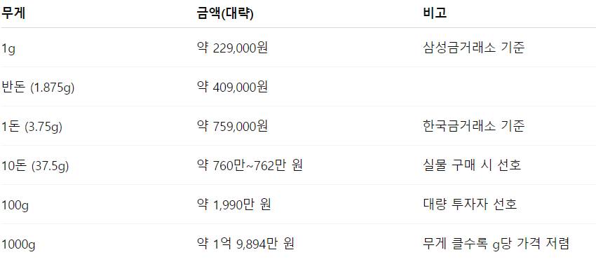 국내에서 거래 단위는 ‘돈’(3.75g)입니다.